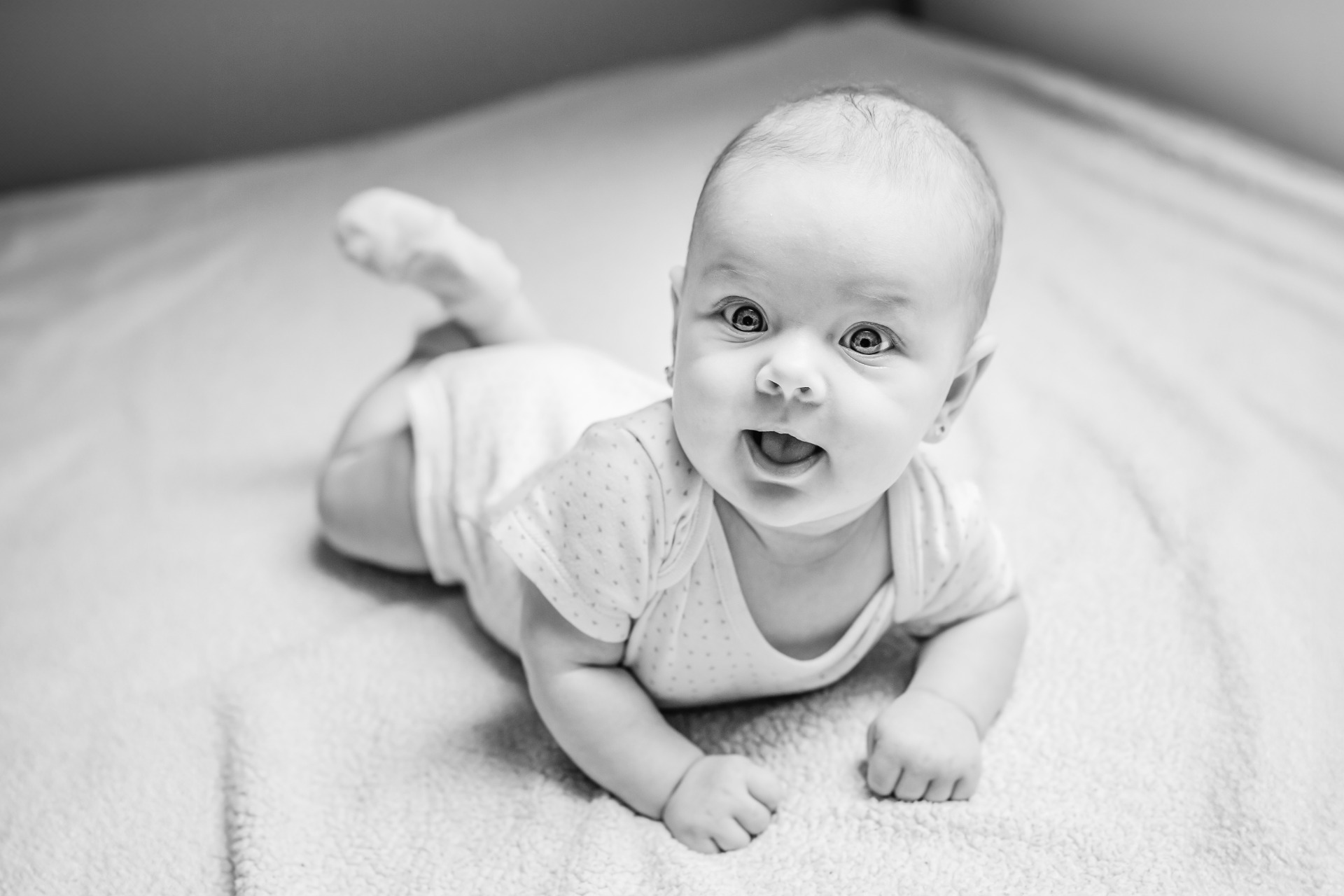 Netrvám na tom, že musíme miminko fotit v prvních 14 dnech života. Ano, je to fajn období v tom, že miminka jsou hodně spavá a dost možná se nám díky tomu i nějaké fotky spícího miminka podaří vyfotit. Ale pokud se za tak krátkou dobu nestíháte ani rozkoukat, natož přemýšlet nad focením, domluvme se klidně na později. Od 3 měsíců už většinou miminka pasou krásně koníčky a dají se tak zachytit i jiné veselé snímky.